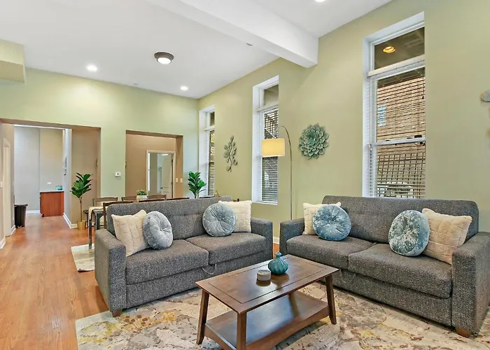 Puedes llegar a Skydeck de Chicago en pocos minutos en coche, mientras que The Winchester está justo al lado del apartamento. El Muelle de la Armada se encuentra a una distancia de 7 km del apartamento de 139 m² y a 20 km del aeropuerto Internacional Midway.